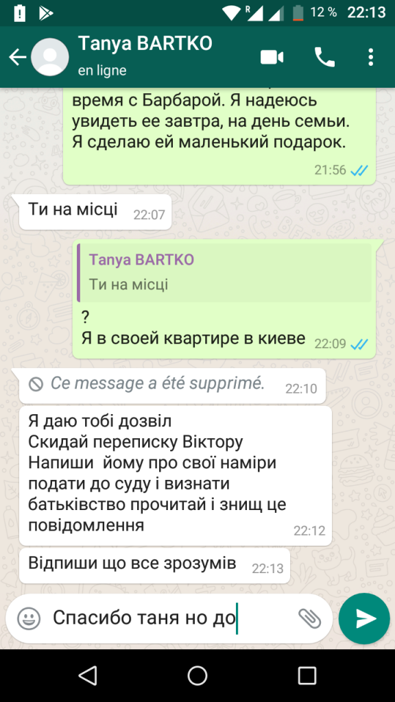 Деякі повідомлення від Тані: