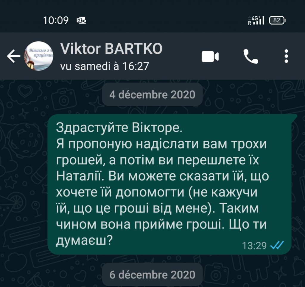 У жовтні 2020 року Віктор БАРТКО погодився зі мною зустрітися. Він призначив мені зустріч на стоянці на околиці Києва … Віктор БАРТКО – суддя (на пенсії). Те, що її онук не бачить свого батька, її не цікавить.